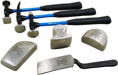 9 Piece Auto Body Repair Tool, Carbon Steel Body Fender Tool, Body Hammer Dent Body Car Body Repair Tool Kit, Genuine Hickory Handle Steel Dolly Set, Heavy Duty Performance Tool