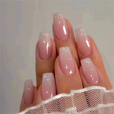 TBRZTR Press On Nails Medium Length Square False Nails Colorful Gradient Acrylic Nails Full Cover Artificial Coffin Nails Press Nails With Design