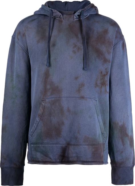 Palm Angels Leaf Tie Dye Hoodie Yellow Cotton Drawstring Hood Ribbed Cuffs And Hem Kangaroo Pocket