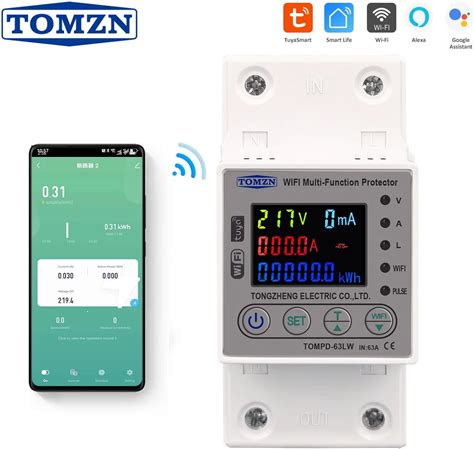 TOMZN Tuya Single Phase 65A 110V 220V AC WIFI Smart Energy Meter Timer Power Consumption Monitor Kwh