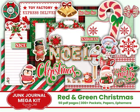 Christmas Junk Journal Kit: 300 Ephemera, Tags, Pockets, Fussy Cuts, Envelopes, Papers (PDF Printable)