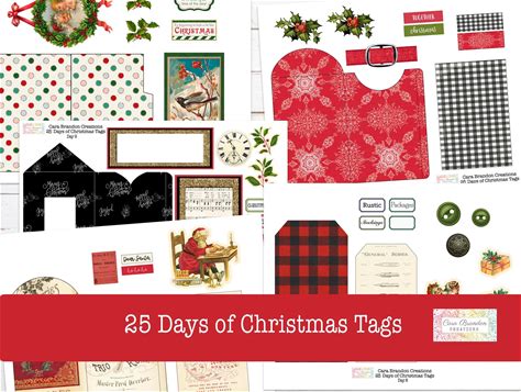 25 Days Of Christmas Tags, Digital Junk Journal Kit (PDF Download)