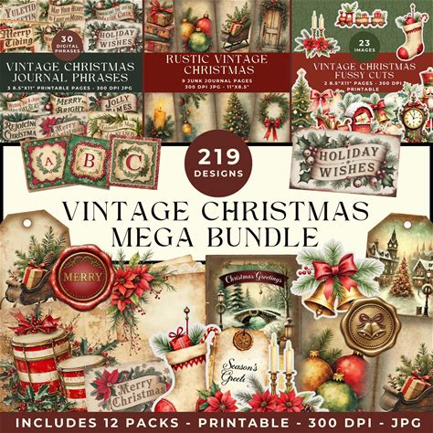 Vintage Christmas Printable Mega Bundle: Rustic Old-Fashioned Ephemera (Junk Journal Pages, Words, Tags, Fussy Cuts & More Digital Download)