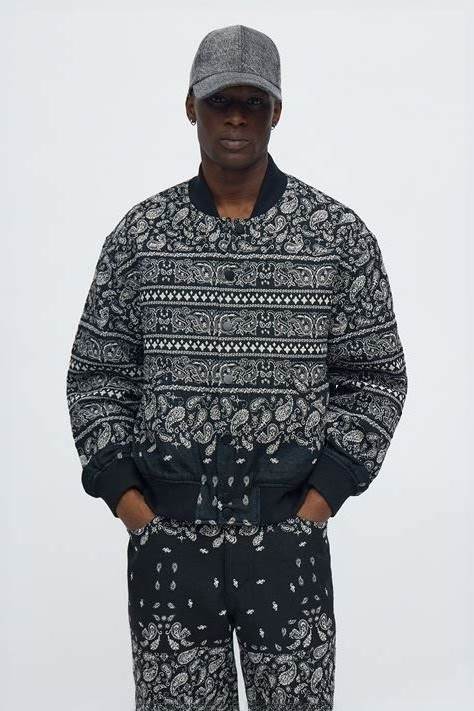 Men's Relaxed Paisley Jacquard Bomber Jacket In Black Size Medium | Fashion Nova