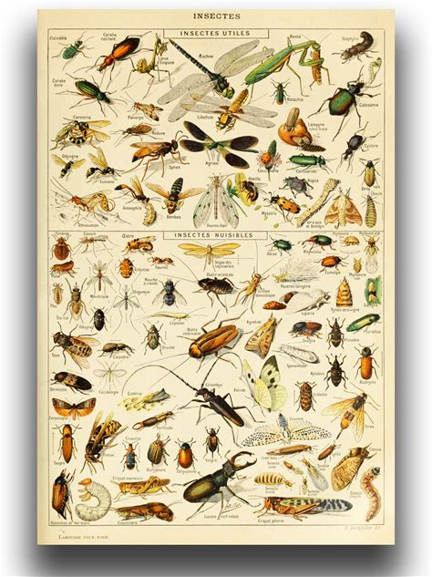 Vintage Insect Poster Print - Botanical Canvas Wall Art - Science Education Charts - Entomology Arthropod Learning Pictures - Kindergarten Natural
